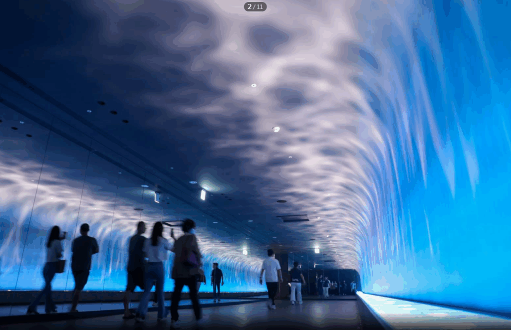 3️⃣ 採「開放式缸體」設計,讓遊客零距離觀察海洋生物。